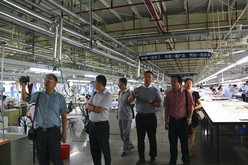 图为参观宝鸟服饰公司车间
