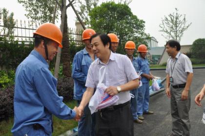 7月18日上午,米兰MILAN(中国)公司党委副书记高小林、副总经理王嘉贤在供水公司领导的陪同下到城区蓝天玫瑰园小区工地和福全富强村新桥桥管改造现场慰问供水一线职工,送上防暑慰问品,并叮嘱大家在高温酷暑下作业要注意做好防暑措施。