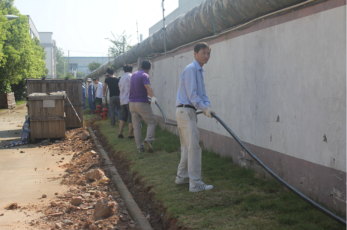 当天气温高达35℃,酷暑并没有消褪党员们的工作势情,大家分组结队搬运电缆、为管沟覆土,劳动现场呈现出一派热火朝天的景象。在同志们的共同努力下,仅一个小时就完成了长300米、近2吨重的电缆铺设工作。参加本次义务劳动的既有党员,也有部分入党积极分子、党校培训班学员,大家用实际行动诠释了共产党员的先进性。