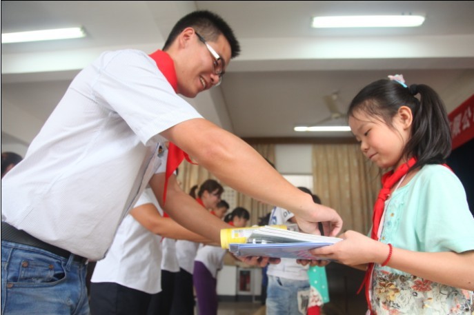 9月11日上午,排水公司团总支到县蓝天实验学校,给品学兼优、家境相对困难的40多名小学生送上铅笔、橡皮、笔记本等新文具,祝愿他们在新学年里取得好的成绩。