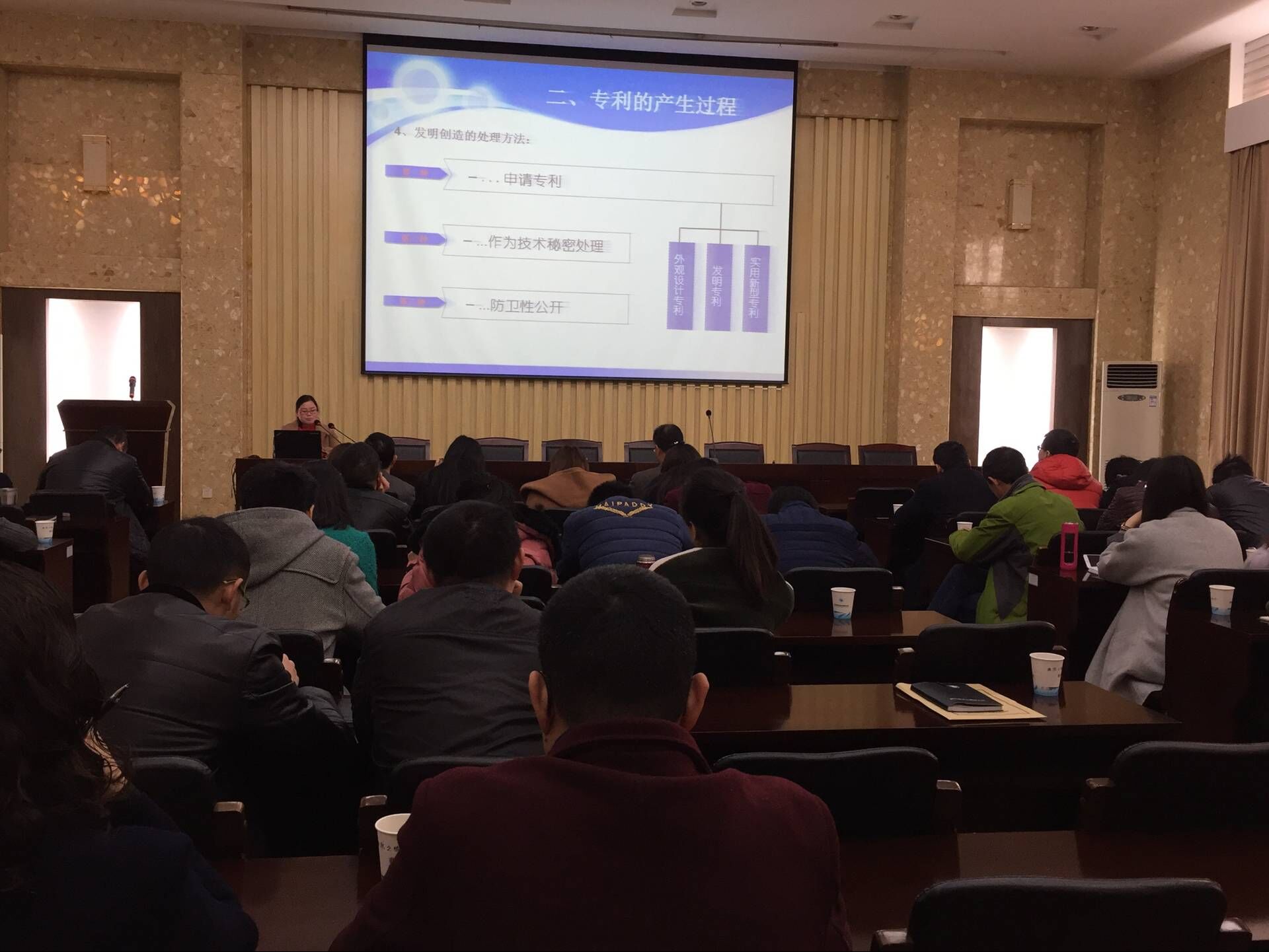 为提升公司创新能力,3月3日上午,公司邀请绍兴越兴专利事务所专家在四楼会议室举办了一期专利知识培训,各部门、分公司中层副职以上领导及相关人员共计70余人参加。